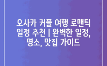 오사카 커플 여행 로맨틱 일정 추천 | 완벽한 일정, 명소, 맛집 가이드 오사카는 사랑하는 사람과 함께하는 여행에 적합한 도시입니다. 다양한 관광 명소와 맛있는 음식이 가득한 이곳에서 잊지 못할 추억을 만들어보세요. …
