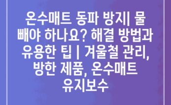 온수매트 동파 방지| 물 빼야 하나요? 해결 방법과 유용한 팁 | 겨울철 관리, 방한 제품, 온수매트 유지보수에 대해 알아보겠습니다. 겨울철 온수매트는 따뜻한 수면을 위해 필수적인 아이템입니다. 그러나, 혹한기에는 동파의 위험이 …