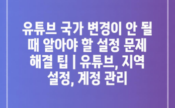 유튜브 국가 변경이 안 될 때 알아야 할 설정 문제 해결 팁 | 유튜브, 지역 설정, 계정 관리 Read More