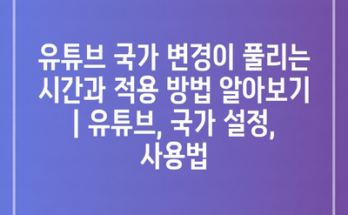유튜브 국가 변경이 풀리는 시간과 적용 방법 알아보기 | 유튜브, 국가 설정, 사용법 유튜브에서 국가를 변경하면 다양한 콘텐츠를 즐길 수 있습니다. 하지만 이 기능을 사용하기 위해서는 몇 가지 조건을 알아야 …
