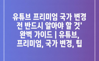 유튜브 프리미엄 국가 변경 전 반드시 알아야 할 것’ 완벽 가이드 | 유튜브, 프리미엄, 국가 변경, 팁