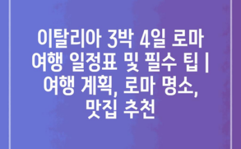 이탈리아 3박 4일 로마 여행 일정표 및 필수 팁 | 여행 계획, 로마 명소, 맛집 추천 이탈리아 로마는 역사와 문화가 가득한 도시로, 여행자에게 잊지 못할 경험을 제공합니다. 이번 여행 계획에서는 …