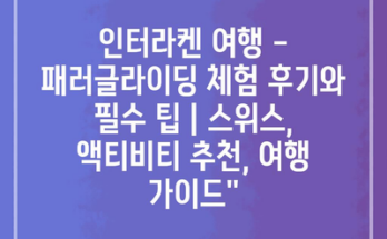 인터라켄 여행 – 패러글라이딩 체험 후기와 필수 팁 | 스위스, 액티비티 추천, 여행 가이드” Read More