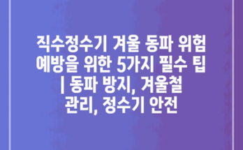직수정수기 겨울 동파 위험 예방을 위한 5가지 필수 팁 | 동파 방지, 겨울철 관리, 정수기 안전