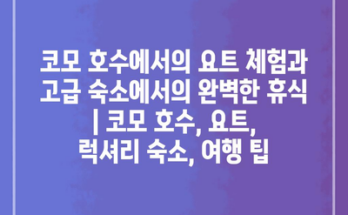 코모 호수에서의 요트 체험과 고급 숙소에서의 완벽한 휴식 | 코모 호수, 요트, 럭셔리 숙소, 여행 팁 Read More