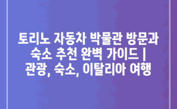 토리노 자동차 박물관 방문과 숙소 추천 완벽 가이드 | 관광, 숙소, 이탈리아 여행 Read More