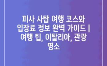 피사 사탑 여행 코스와 입장료 정보 완벽 가이드 | 여행 팁, 이탈리아, 관광 명소 오늘은 피사의 유명한 사탑을 방문할 때 필요한 유용한 정보를 소개합니다. 먼저, 피사 사탑은 이탈리아의 상징적인 건축물로, …