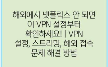 해외에서 넷플릭스 안 되면 이 VPN 설정부터 확인하세요! | VPN 설정, 스트리밍, 해외 접속 문제 해결 방법 Read More