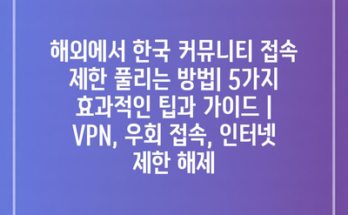 해외에서 한국 커뮤니티 접속 제한 풀리는 방법| 5가지 효과적인 팁과 가이드 | VPN, 우회 접속, 인터넷 제한 해제 Read More