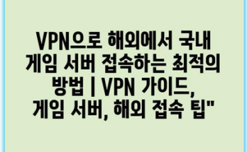 VPN으로 해외에서 국내 게임 서버 접속하는 최적의 방법 | VPN 가이드, 게임 서버, 해외 접속 팁”