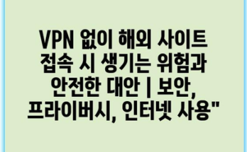 VPN 없이 해외 사이트 접속 시 생기는 위험과 안전한 대안 | 보안, 프라이버시, 인터넷 사용” Read More