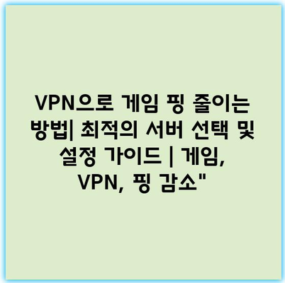VPN으로 게임 핑 줄이는 방법| 최적의 서버 선택 및 설정 가이드 | 게임, VPN, 핑 감소”