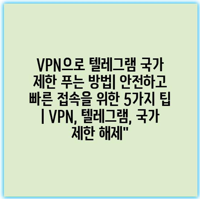 VPN으로 텔레그램 국가 제한 푸는 방법| 안전하고 빠른 접속을 위한 5가지 팁 | VPN, 텔레그램, 국가 제한 해제