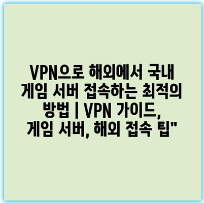 VPN으로 해외에서 국내 게임 서버 접속하는 최적의 방법 | VPN 가이드, 게임 서버, 해외 접속 팁”