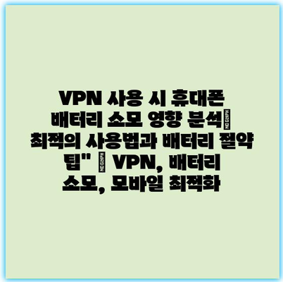 VPN 사용 시 휴대폰 배터리 소모 영향 분석| 최적의 사용법과 배터리 절약 팁” | VPN, 배터리 소모, 모바일 최적화에 대해 자주 묻는 질문 TOP 5